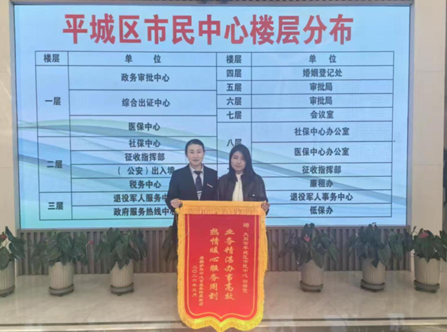 近日,平城区政务服务大厅里暖意融融。启然护肤中心百盛奥特莱斯店负责人将一面印有“业务精湛办事高效 热情暖心服务周到”的锦旗送到工作人员田靖雯手中。“原本以为要跑三四趟、等上三四天,没想到咨询完第二天就全都办好了。”公共场所卫生许可事项在田靖雯的全程引导下高效办结,这面锦旗背后,是平城区行政审批服务管理局深化“导办、帮办、代办”三位一体服务改革的生动缩影。
