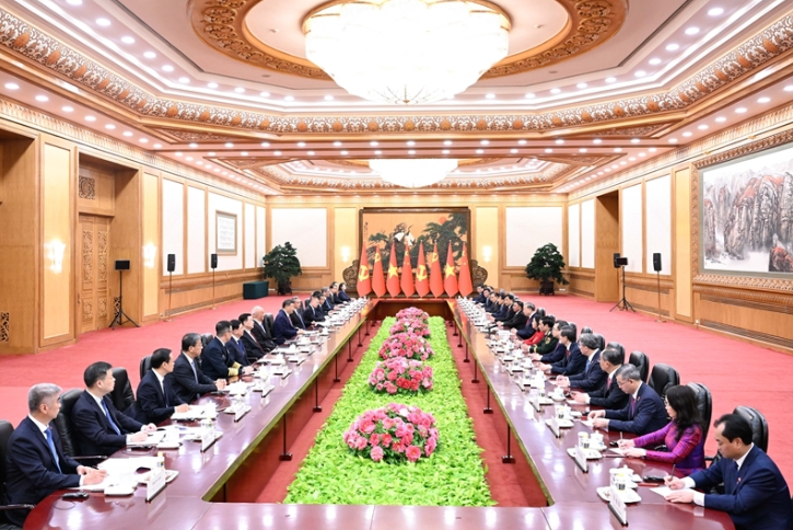 苏林表示,这是我当选越南国家主席后首次出访,也正值习近平总书记、国家主席去年对越进行历史性访问一周年,充分反映了总书记同志所说的“邻里越走越亲”。越方感谢中国共产党、政府和人民对越共十四大提供的重要政治支持,愿始终同中方赓续传统友谊,推动两国全面战略合作伙伴关系和具有战略意义的命运共同体不断发展。越方祝贺中国胜利完成“十四五”规划并取得历史性成就,相信中方将顺利实施“十五五”规划,不断推进高质量发展和社会主义现代化建设,如期实现第二个百年奋斗目标,并成为世界和平发展的支柱力量和首要动力。