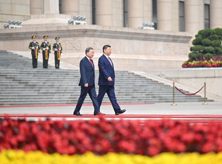 双方要同心协力,携手同行现代化道路。要加快发展战略对接,优先推进基础设施互联互通。要加强人工智能、半导体、物联网等新兴领域合作。中方欢迎更多越南优质产品进入中国市场。双方要继续加强旅游、文化、媒体、教育、卫生、体育等友好交流合作,促进两国人民相知相亲。我愿同你一道宣布启动2026-2027年“中越旅游合作年”。