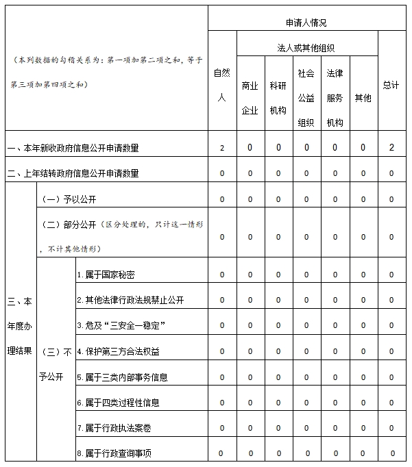 三、收到和处理政府信息公开申请情况