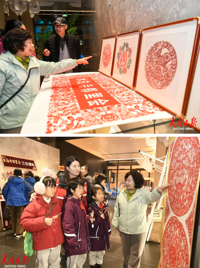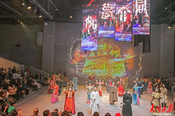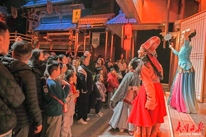 居民们欢聚一堂,逛市集、赢糖葫芦、赏非遗剪纸、沉浸式观看《如梦大同》演出。