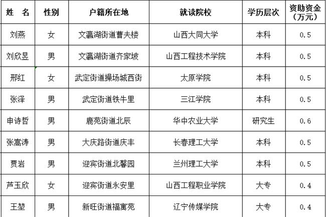 平城区2026年度扶残助学(大学生)圆梦工程项目拟资助人员名单公示