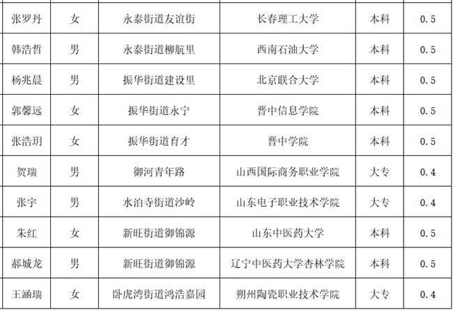 (困难残疾人家庭子女大学生)名单