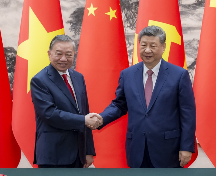 苏林表示,这是我当选越南国家主席后首次出访,也正值习近平总书记、国家主席去年对越进行历史性访问一周年,充分反映了总书记同志所说的“邻里越走越亲”。越方感谢中国共产党、政府和人民对越共十四大提供的重要政治支持,愿始终同中方赓续传统友谊,推动两国全面战略合作伙伴关系和具有战略意义的命运共同体不断发展。越方祝贺中国胜利完成“十四五”规划并取得历史性成就,相信中方将顺利实施“十五五”规划,不断推进高质量发展和社会主义现代化建设,如期实现第二个百年奋斗目标,并成为世界和平发展的支柱力量和首要动力。