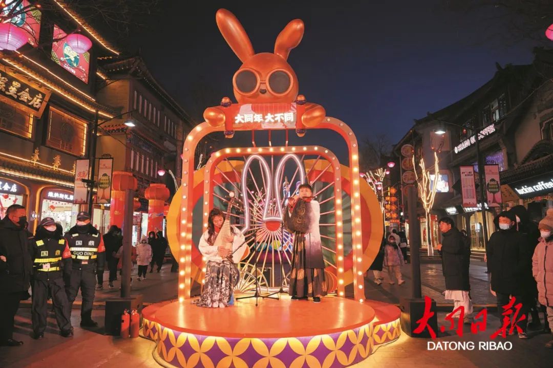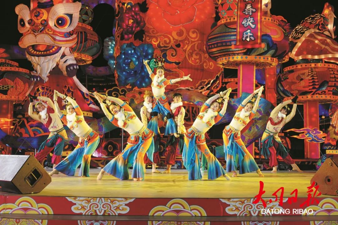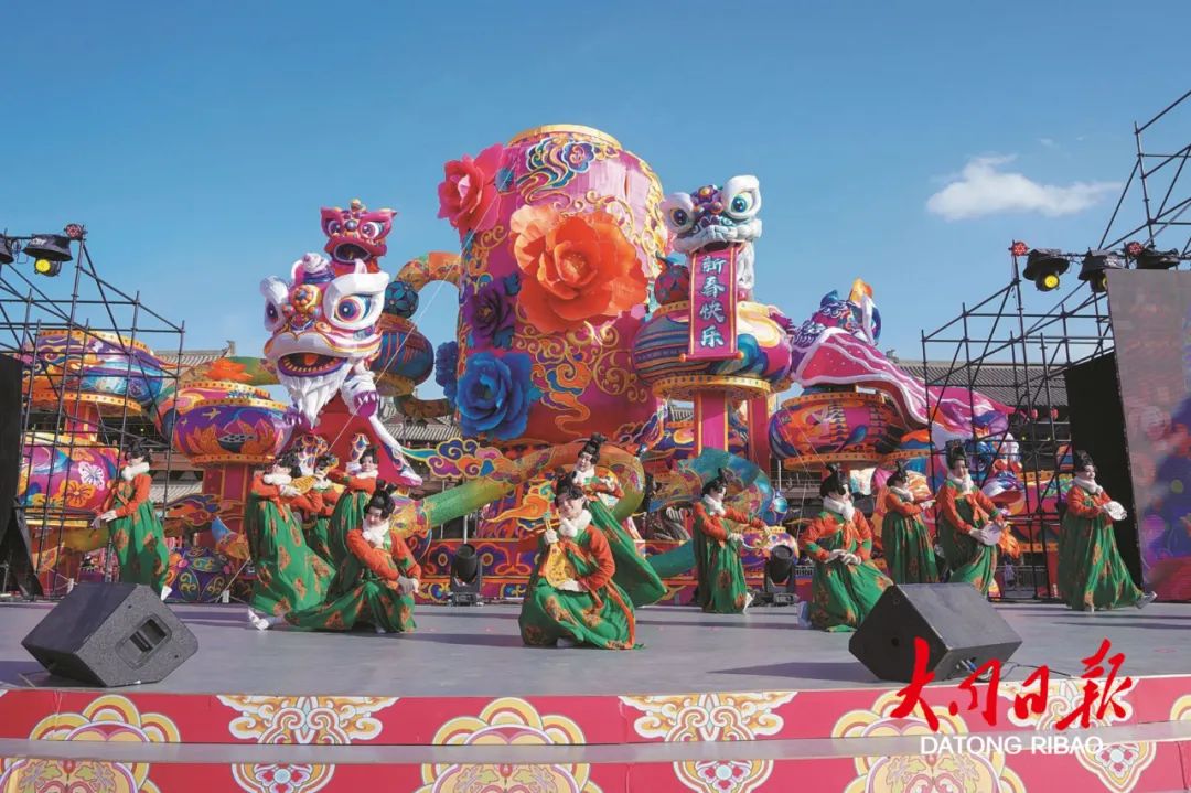 歌舞华筵启,喜新春新岁。2023“大同年 大不同”新春系列活动为期33天,设置1个主会场——华严广场、2条创意轴线——下寺坡街和鼓楼西街、1个主题空间——纯阳宫广场,共有鸣鼓迎新、纳吉招财、凤鸣元夕等5大节点活动,在节庆期间,每日更有多达70场的演出,涵盖文艺汇演、创意互动、演艺巡游、新春歌谣等丰富内容,为大同古城新春带来别样的精彩。