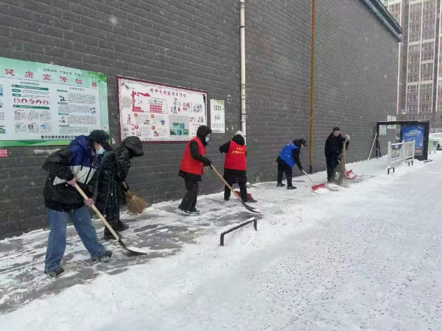 各街道社区闻令而动,组织工作人员、网格员、志愿者分片包干,深入背街小巷、老旧小区、农贸市场周边等区域,手持铁锹、扫帚等工具全力清除积雪,为居民打通安全出行通道。沿街商户积极落实“门前五包”责任制,自发清扫门前积雪;辖区各企事业单位也迅速组织干部职工前往责任片区开展清雪工作,大家齐心协力、分工协作,用实际行动保障道路畅通。