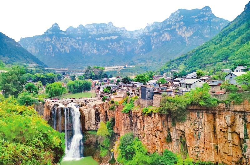 沿太行一号旅游公路长治段漫游,行至平顺县虹梯关乡虹霓村。山风裹着泥土和草木的清香扑面而来,一汪碧水赫然眼前。虹霓村位于虹霓河山边的崖畔之上,背山面水,从村子东侧望去,奔涌的瀑布从悬崖的折断处倾泻而下。“这里山势险峻,悬崖建村,村边挂瀑。”来自河北的游客刘伟慕名而来,表示不虚此行。作为第二批中国传统村落和第七批国家级中国历史文化名村,虹霓村有得天独厚的自然和人文历史资源禀赋,收获了乡村旅游带来的红利。据统计,该村全年接待游客超30万人次,旅游收入约600万元。