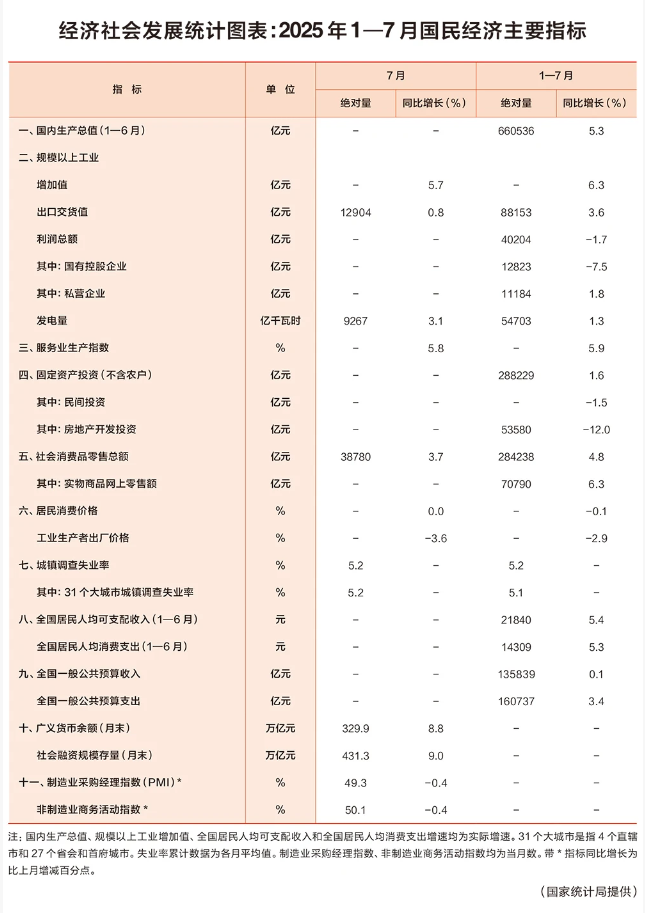经济社会发展统计图表:2025年1—7月国民经济主要指标